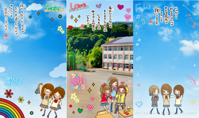 “一期一会”をテーマに女の子の友情や恋愛、スクールライフなどを切り取って描かれ、自分にぴったり当てはまりそうな、すぐとなりにいる友達のような、身近で共感できるイラストとコトバが人気のヒミツです。