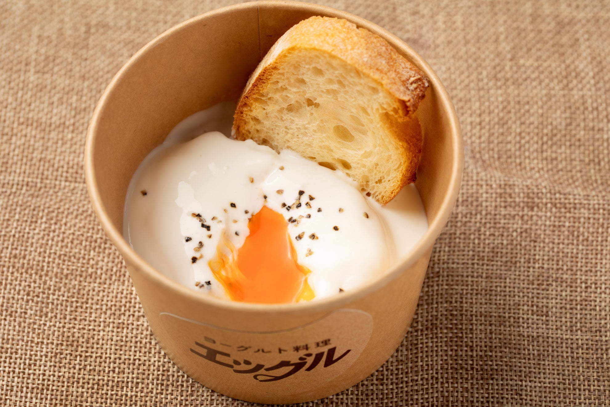 店名にもなっている「エッグル」とは、ヨーグルトとエッグ(卵) を合わせた新メニューの造語。ヨーグルトの新しい食べ方を研究する中で、世界のヨーグルト料理で、ブルガリアやトルコの料理にあったメニューからヒントを得て、ヨーグルトにポーチドエッグを入れて食べる“新感覚の食卓Food「エッグル」”が誕生しました。