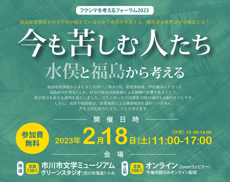 主催:フクシマを考えるフォーラム2023 実行委員会 事務局:04-7197-3040(NPO 支援センターちば)
