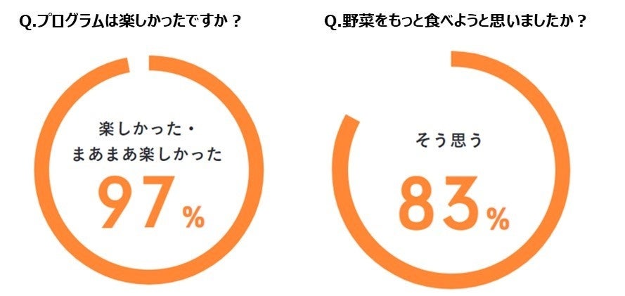 ・「今から何が始まるんだろう」最初からワクワクの子どもたち。プログラムを楽しむうちに、今までまったく野菜がダメだった児童がジュースを口にしてくれました!プログラムを通じ、新しいことにチャレンジすることが楽しいと感じらえる第一歩になったのではないかと思います。(静岡県 放課後児童クラブ ご担当者)