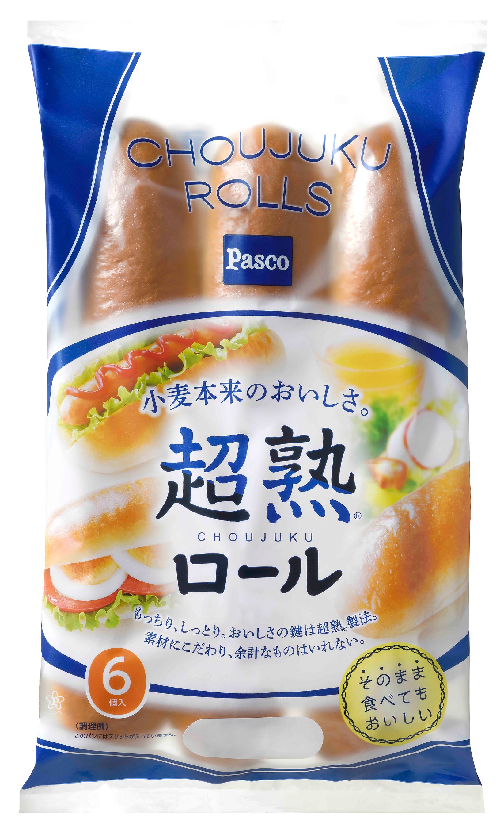 「超熟製法」により、しっとり、さらっとした口どけのロールパンです。そのままでも、お好みの食材をはさんでも、おいしくお召し上がりいただけます。