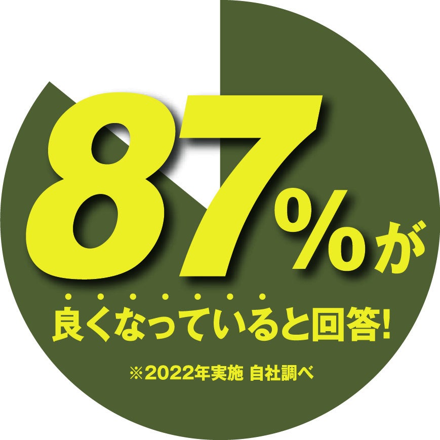 本商品の発売に向けて、「ごっつ旨いお好み焼」購入経験者100 名を対象に、リニューアル商品の感想を調査した結果、87%の方が「良くなっている」と回答しました。