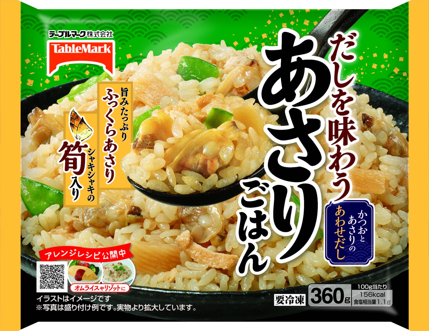 ふっくらやわらかなあさりに、歯ごたえの良い筍と、色あざやかなきぬさや、油揚げを加えました。かつおだしがふわっと香り、あさりだしの旨味がごはんにしみ込んだ、満足感のある和風ごはんです。