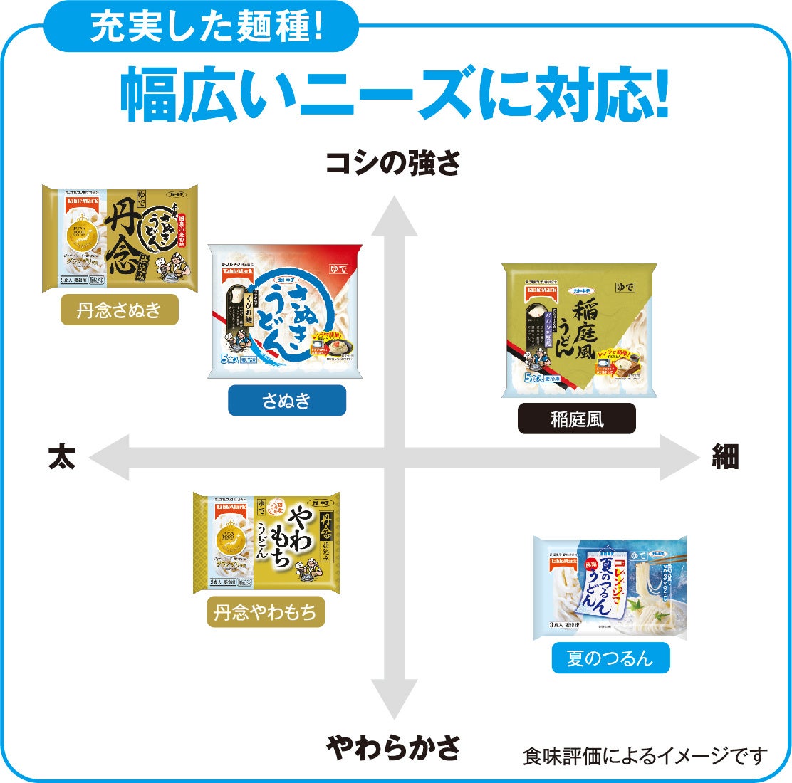 - 麺:拡大する夏場の玉うどん市場をさらに盛り上げるラインナップ