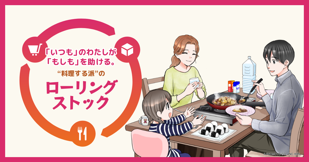 味の素株式会社(社長:藤江 太郎 本社:東京都中央区)は、食の情報サイト「AJINOMOTO PARK」内で食品の家庭備蓄促進に向けた新しいWebコンテンツ「“料理する派”のローリングストック」を公開しました。(https://park.ajinomoto.co.jp/special/foodstock/)