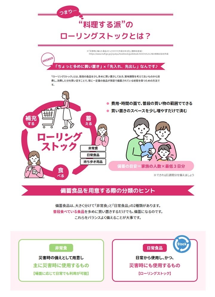 *本コンテンツは農林水産省ホームページ内「ローリングストックについて知りたい方へ」でもご紹介いただいています。https://www.maff.go.jp/j/zyukyu/foodstock/network/rolling.html