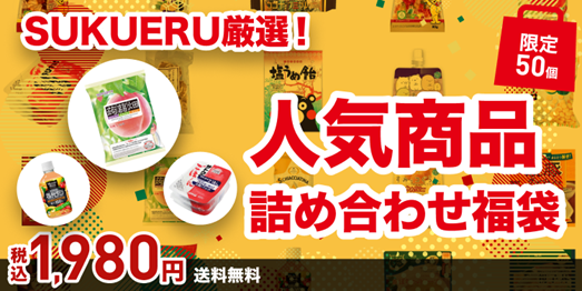 そこで、フードロス削減への貢献をより身近に・手軽に感じてもらうべく、これからSUKUERUを利用される方々に向け、既にご利用いただいているユーザー様方によく選ばれる人気商品の中から、SUKUERUが厳選した《人気商品》を詰め合わせた福袋を数量限定で発売いたします。