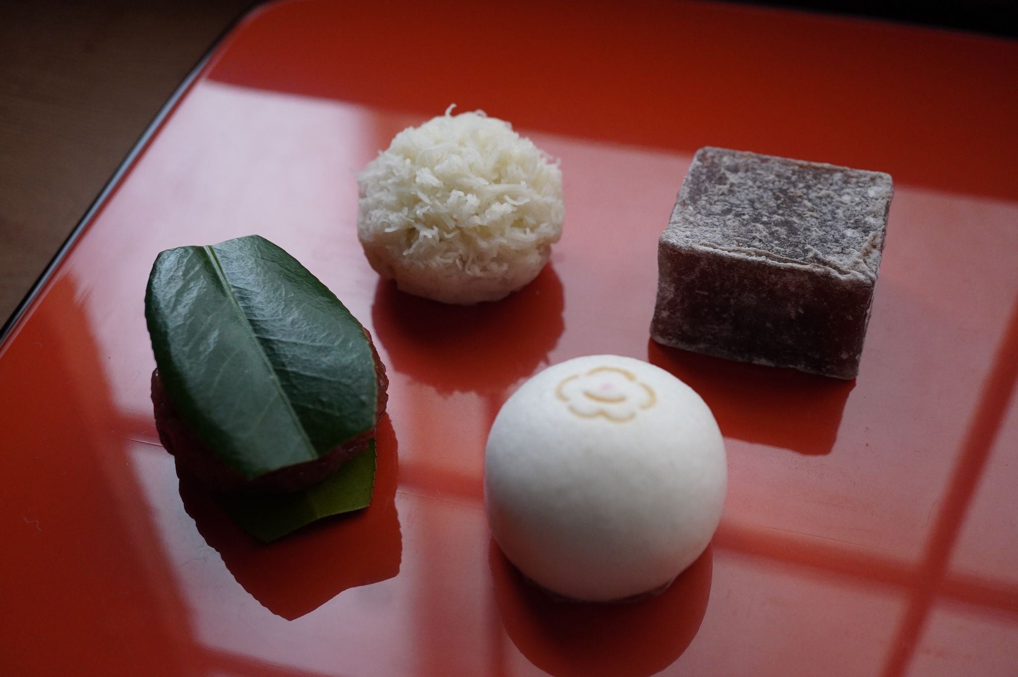生菓子4種〈葛焼き、百合根きんとん、薯蕷饅頭、椿餅〉2,001円