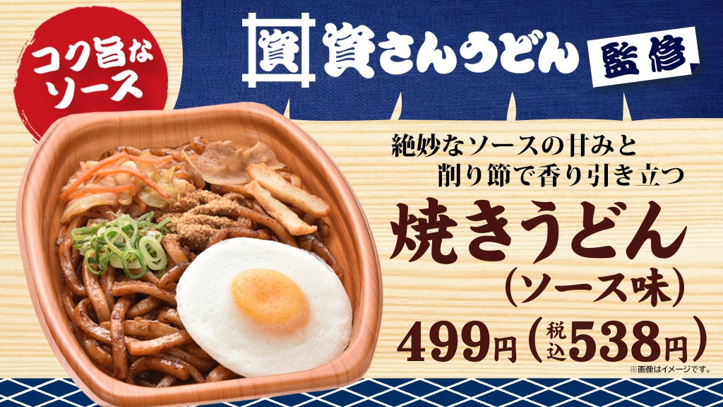 このたびの「焼きうどん」は、福岡県北九州市の小倉が発祥とされ、多くの飲食店で提供される人気メニューです。今回、この「焼きうどん」を北九州発のうどんチェーン店「資さんうどん」が監修しました。麺は通常より長めに茹で、やわらかな食感を追求し、甘みと酸味のバランスが絶妙なオリジナルソースと絡めております。トッピングの削り節を混ぜ込むことで、香りが引き立ち、美味しく召し上がれます。また目玉焼き風オムレツで味の変化も楽しめる一品に仕立てました。
