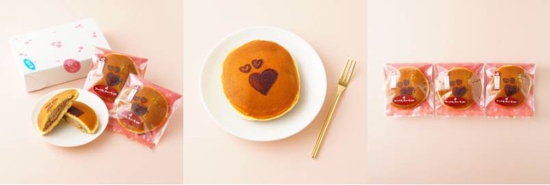 クーベルチュール使用の生ちょこクリームに自家製求肥を添えました。バレンタインにぴったりのかわいいハートの焼印入りどら焼きです。