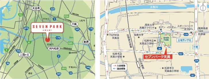 セブンパーク天美が位置する「松原天美」は、国道309号、阪神高速「大和川線・松原線」が交わるクロスポイントに位置し、広域からのアクセスに優れております。