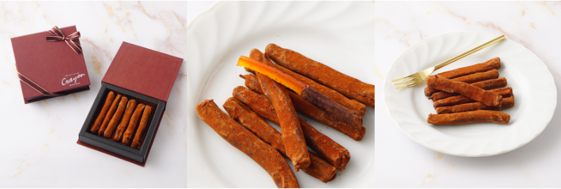 シロップ漬けのオレンジピールをチョコレートでコーティングしています。さっぱりしたチョコレートとオレンジの相性が抜群なスイーツに仕上げました。