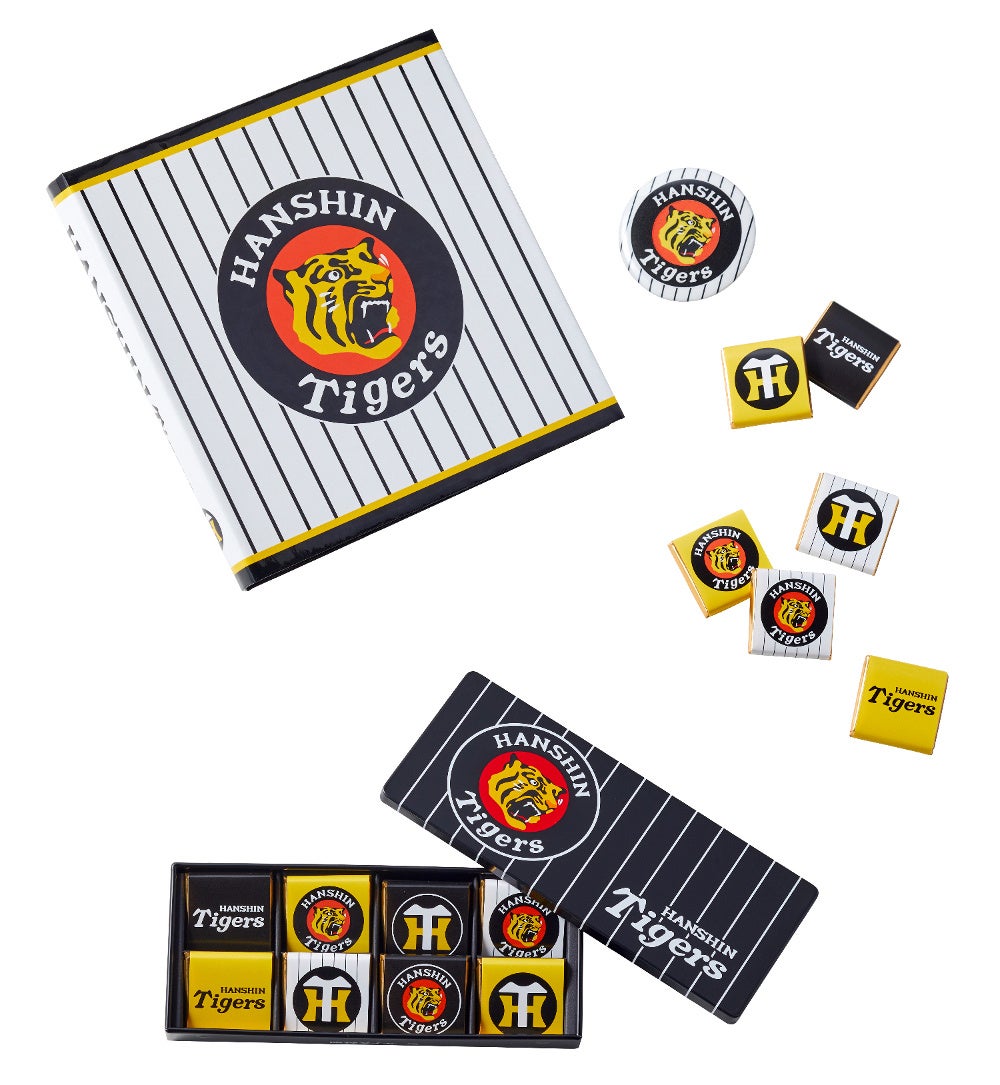 ブック型ボックスにミルクチョコとオリジナル缶バッジがセットになったものや、虎ロゴをあしらったシックな缶にすべて異なるラベルがうれしいチョコも!阪神ファンの方はぜひ!