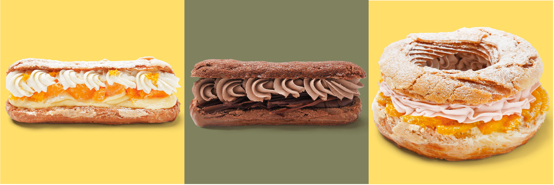 グラン スイート サーカスは、季節に応じた果物から主役となるフルーツをひとつチョイス。看板商品の冷凍ケーキ エクレアと冷凍パリブレストに仕上げます。