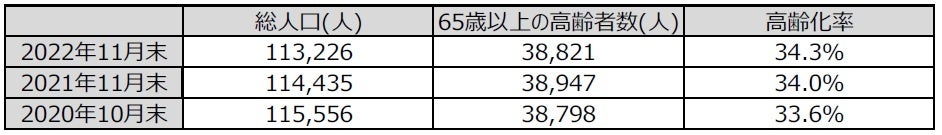 北見市が公表する人口統計※1(2022年11月30日時点)によると、北見市は人口113,226人に対して、65歳以上の高齢者は38,821人、高齢化率は34.3%です。総人口は年々減少しているものの、高齢化率は上昇しています。「第8期北見市高齢者保健福祉計画・北見市介護保険事業計画」※2では、高齢者が健康で介護を必要としない生活を送ることができるよう、介護予防・健康づくりの推進や、高齢者が安心して暮らすために、相談や見守り体制、地域での支え合いを推進し、地域全体で高齢者を支えるネットワークの充実を図ることが掲げられています。