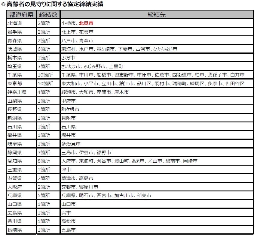 当社では、全国71箇所の地方自治体と高齢者の見守りに関する協定を締結しています(2023年1月16日時点)。