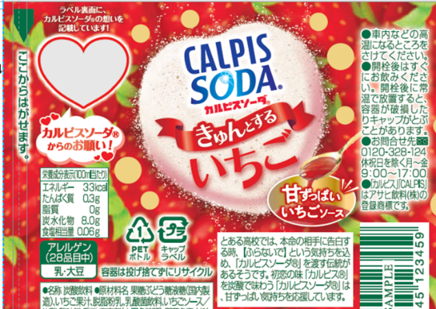 アサヒ飲料株式会社(本社 東京、社長 米女太一)は『カルピスソーダ きゅんとするいちご』を2023年1月24日から期間限定で発売します。