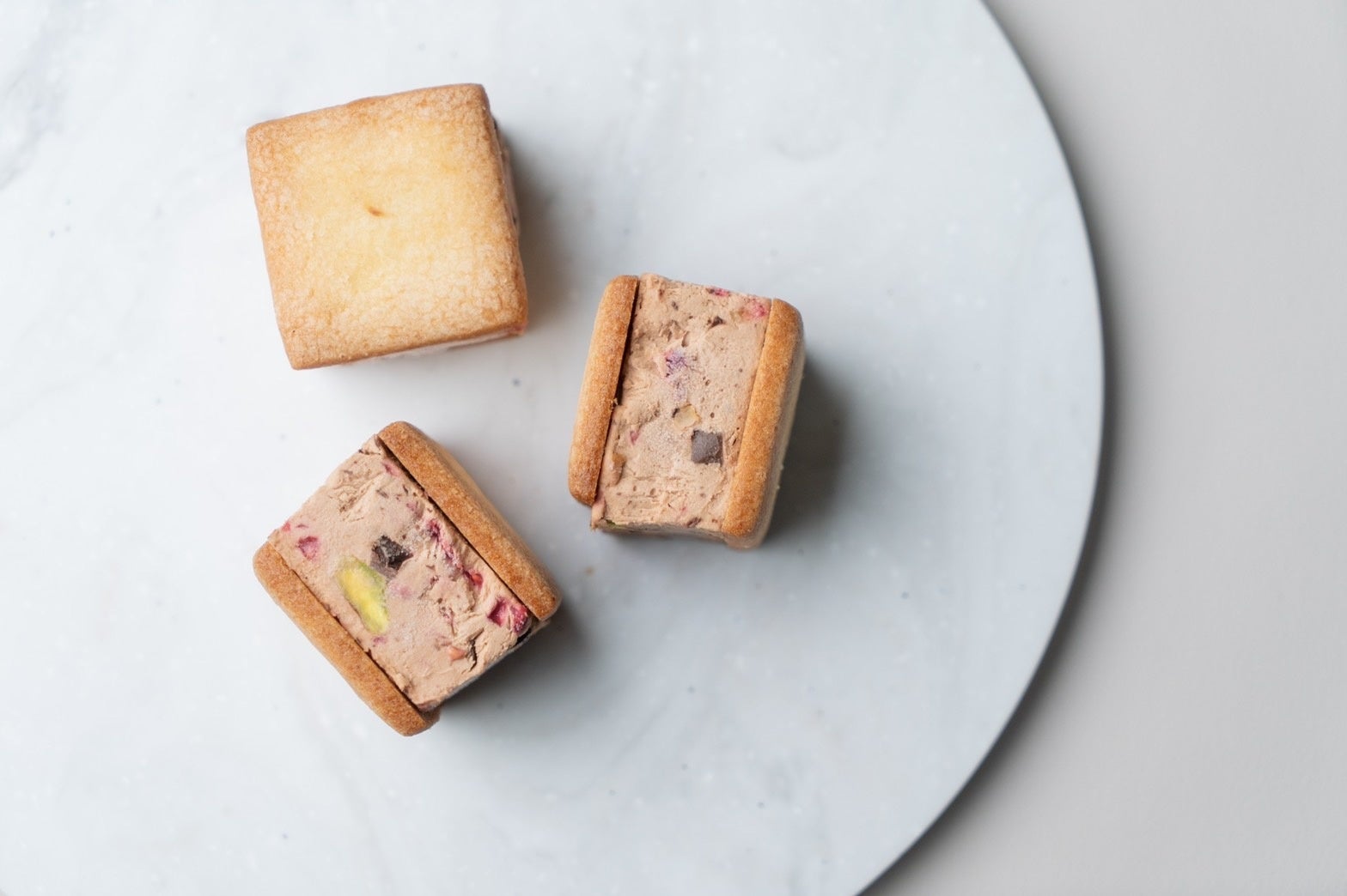 「The CHOCOLATE」のチョコレート層をベースに仕上げたカッサータをアーモンドをたっぷり使用したサブレで挟んだカッサータサンド。
