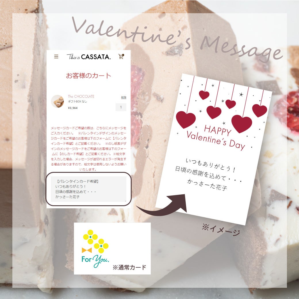 This is CASSATA.では現在、通常デザインのメッセージカードに加えてバレンタイン限定デザインのメッセージカードもご用意しています。