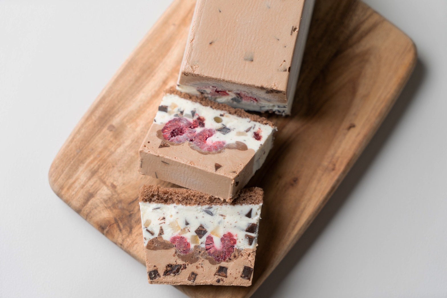 チーズとチョコレートそれぞれの風味を感じられる2種類の層で作り上げたカッサータ。
