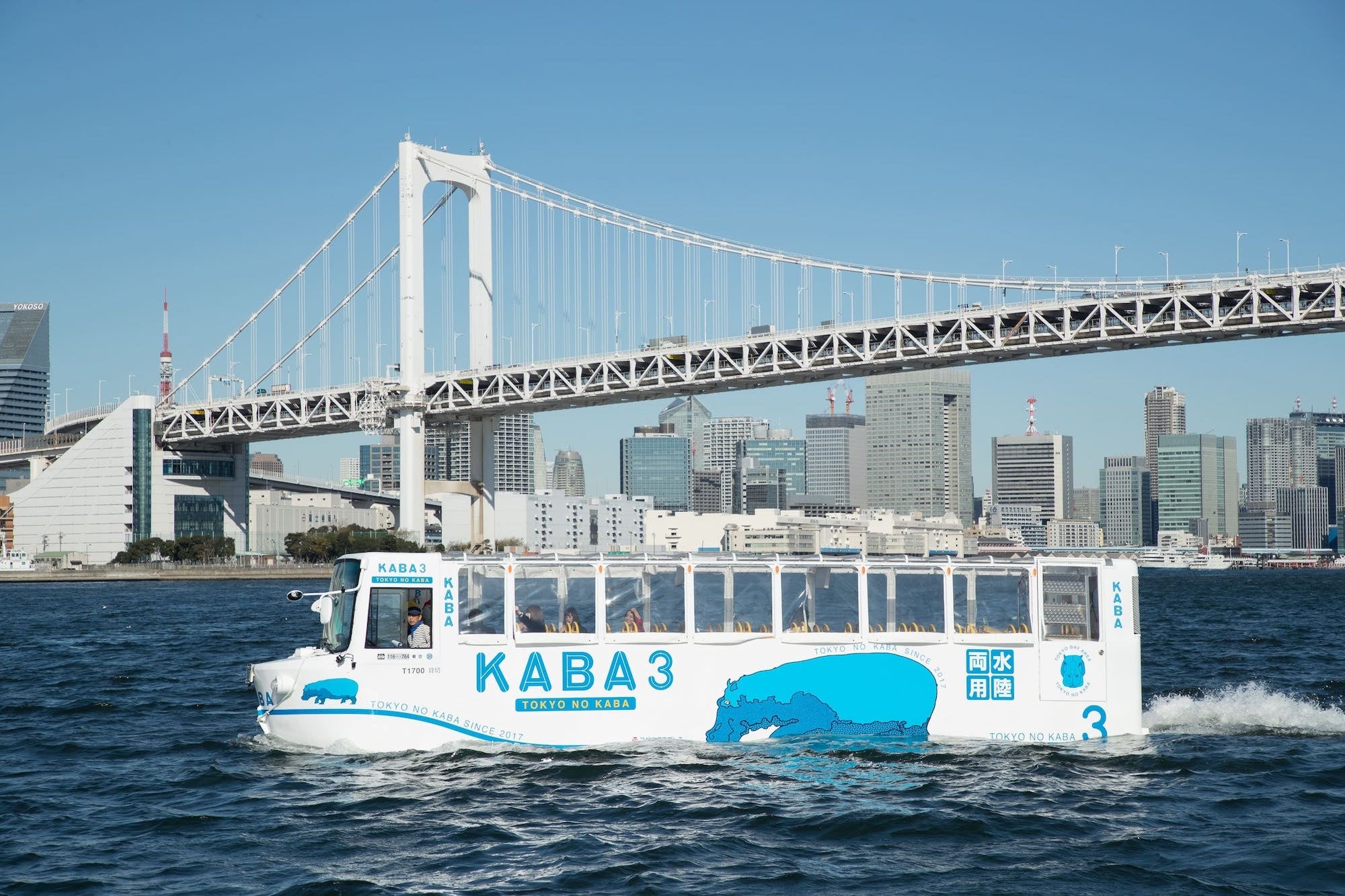 2017年11月に開業した水陸両用バス「TOKYO NO KABA」は、古代エジプトの守り神でもあるカバをイメージしています。お台場エリアのビル群を走り抜けながら陸上走行したあと、お台場海浜公園スロープから大きな水しぶきとともにレインボーブリッジに向かい海へダイブするアトラクションバスです。海に飛び込むスプラッシュの瞬間は大迫力!今回は特別に「東京 芝 とうふ屋うかい」の表門前より出発し、陸と海上の両方から、澤内氏のガイドとともに自然と都会の調和の美しさを満喫、レインボーブリッジを渡りお台場に向かいます。通ってきたレインボーブリッジを海上から見上げることができるのは当プランだけ。上陸した後は再び陸上運行で「東京タワー」を目指します。また、水陸両用バスとしては世界初である「高品質3Dサウンド演出」による臨場感あふれる体験を、バスガイドの観光案内もお楽しみください。