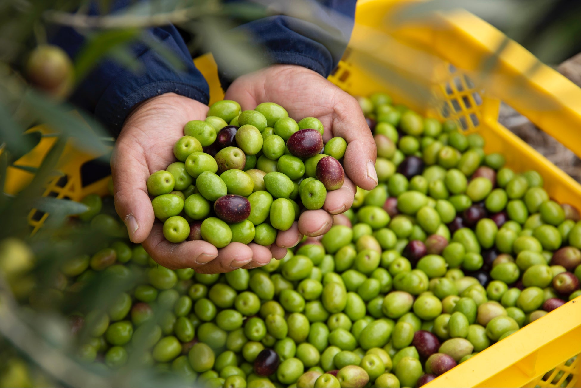 オリーブの実は、落ちたり、強く当たった箇所から傷みます。海外には機械収穫する大規模農園も多いですが、実も木も傷めます。東洋オリーブでは一粒ずつ丁寧に「手摘み」で収穫しています。