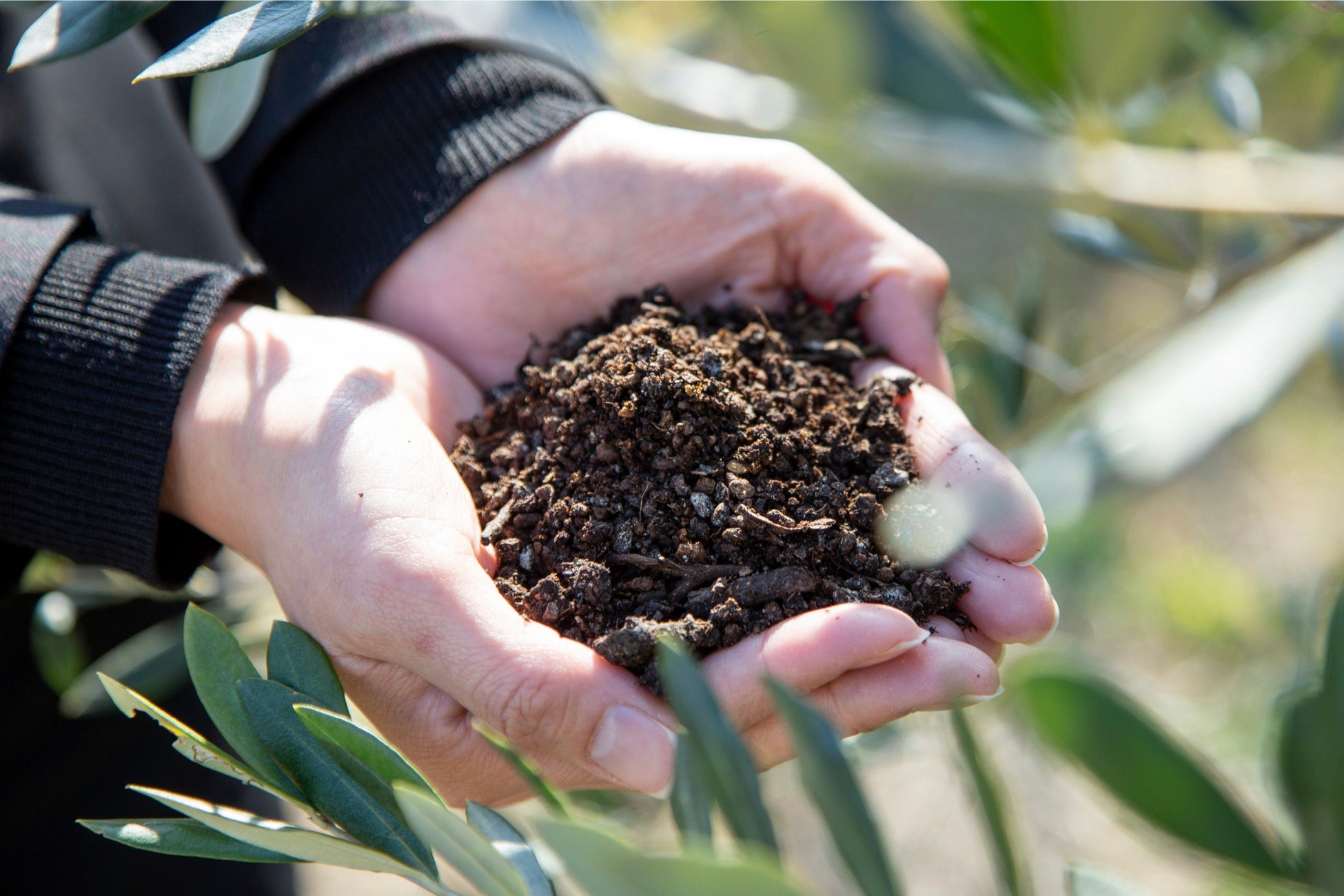 自社農園で出る剪定枝や、自社採油工場で発生する残渣を発酵させた有機堆肥「オリーブ堆肥」を使うことで、資源を循環させながら土とオリーブを育てる有機栽培を可能にしました。