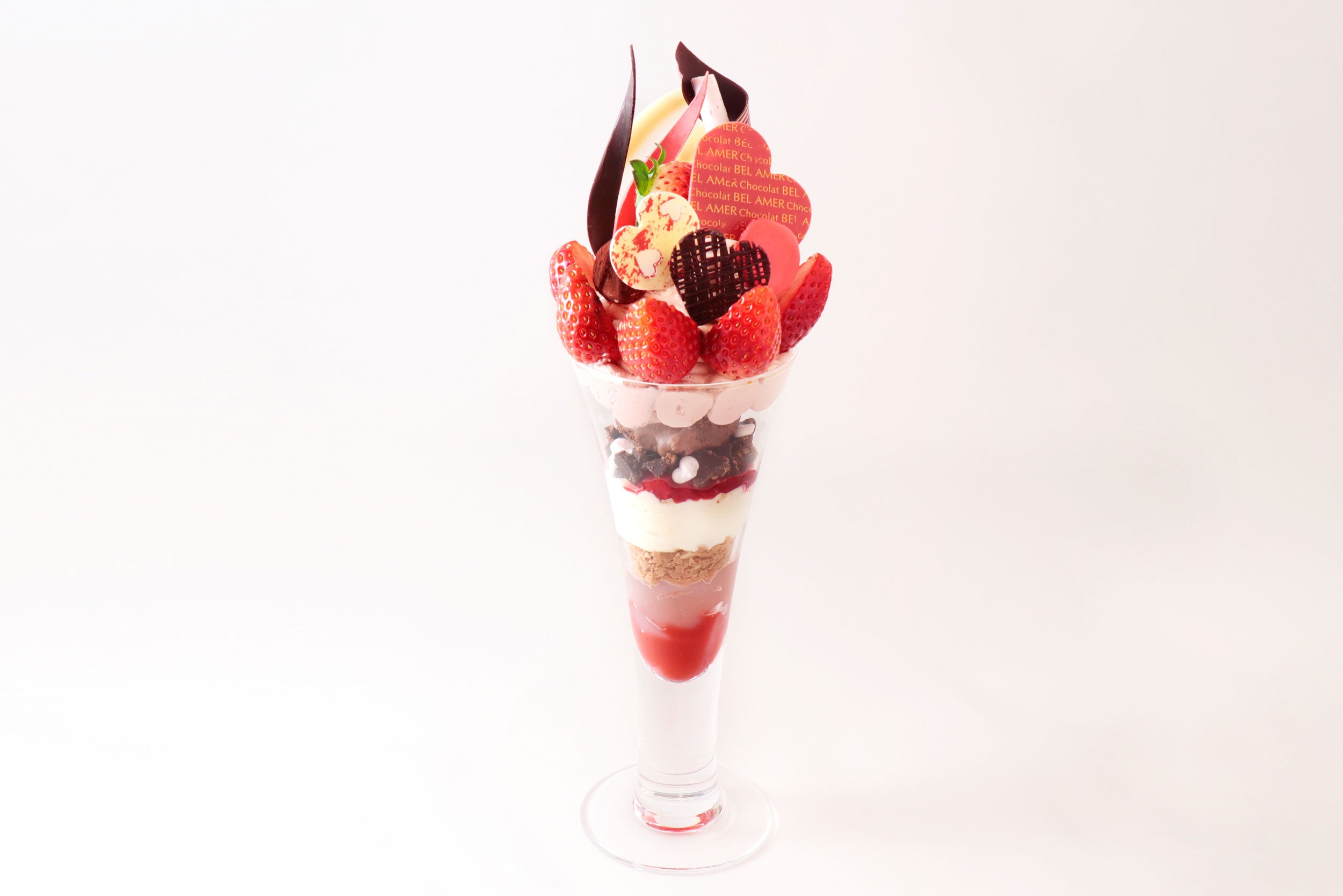 苺とショコラを組み合わせた、期間限定のスペシャルなパフェ。