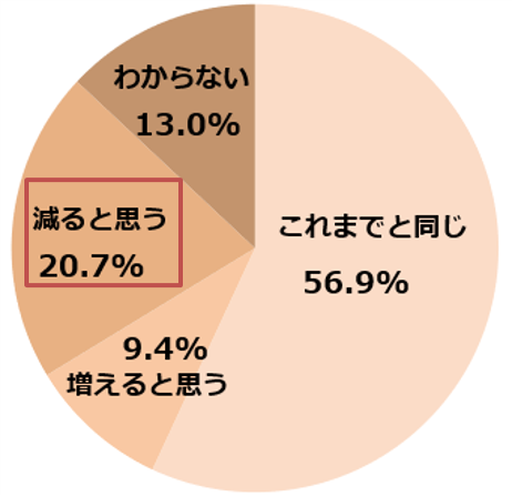 義理チョコや社交辞令のプレゼントの変化については、 20.7%が「減る」と答えており、義理チョコや社交辞令ではなく、大切な人へ贈るという傾向にあるようです。