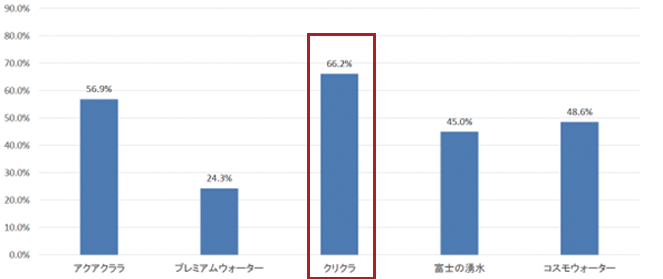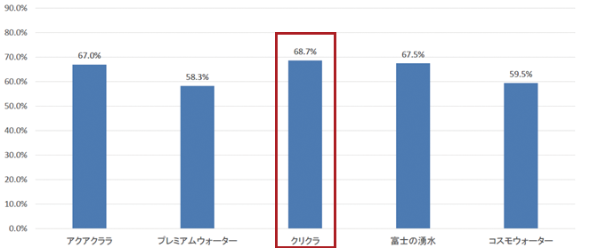 2位は67.5%で「富士の湧水」、3位は67.0%で「アクアクララ」となりました。
