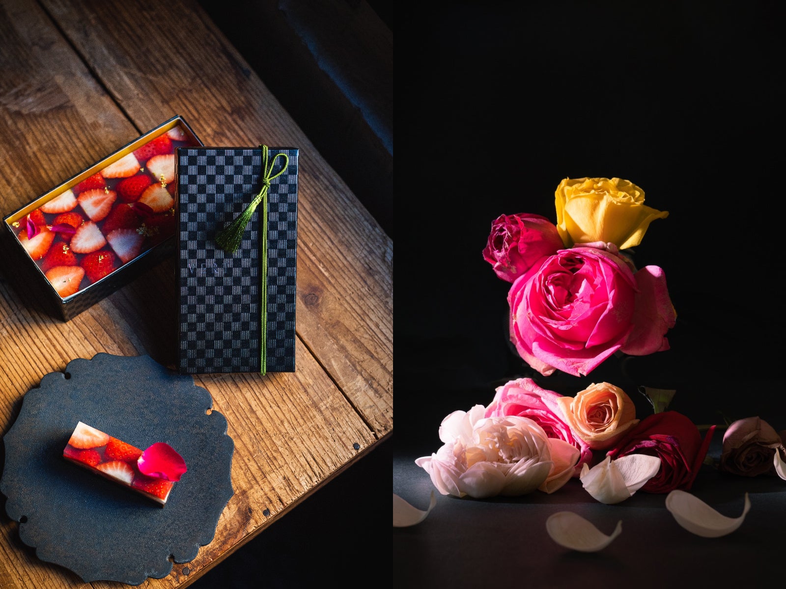 エディブルフラワーの食体験のUP DATEに挑むエディブルフラワー研究所。花のポテンシャルを最大限に引き出した「飾り以外」の創造性を追い求めて、各業界のトップクリエイターとコラボレーションを展開しています。今回はVERTの田中 俊大シェフが「バヌアツカカオ」をテーマに『薔薇とチョコレートの羊羹“儚醇(びょうじゅん)”』が生まれました。栃木県産のいちごを寒天に閉じ込め、フローラルな国産食用薔薇のバラジャムと知覧和紅茶の香りを重ねました。水羊羹の部分には、バヌアツカカオでつくられたアエランチョコレート(エピ島)を使用した新しい味わいの水羊羹です。