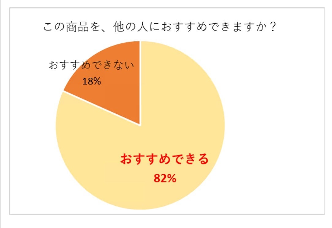 また、82%の方が「おすすめできる」商品であると答えていただきました。
