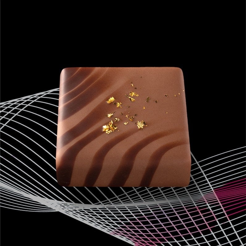 シチリア産アーモンドとインド産砂糖を使いプラリネをつくり、チョコレートとオレンジのゼストと合わせ、ミルクチョコレートでコーティング 。