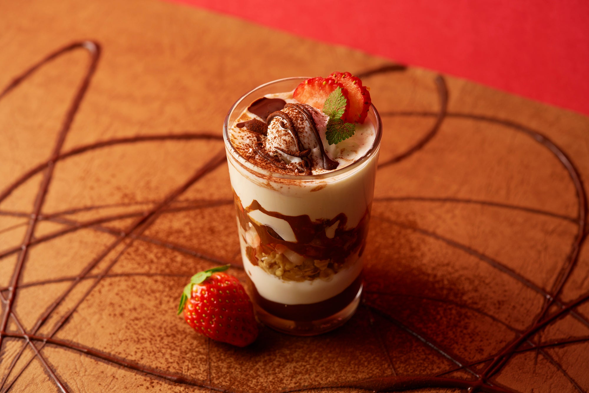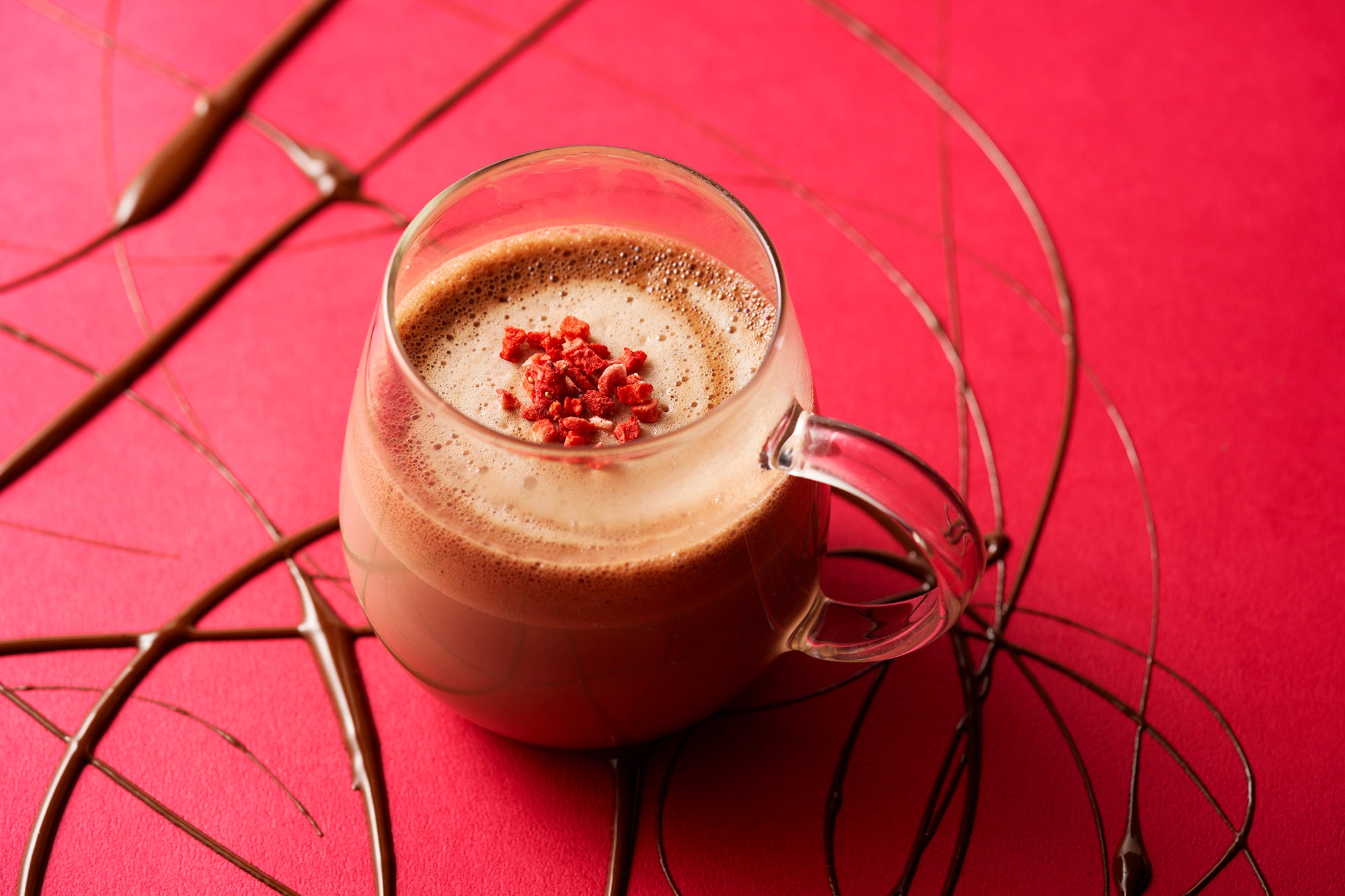 有機カカオを使用したホットチョコレートドリンクです。いちごの風味が香るアガベシロップのトッピングがポイントです。