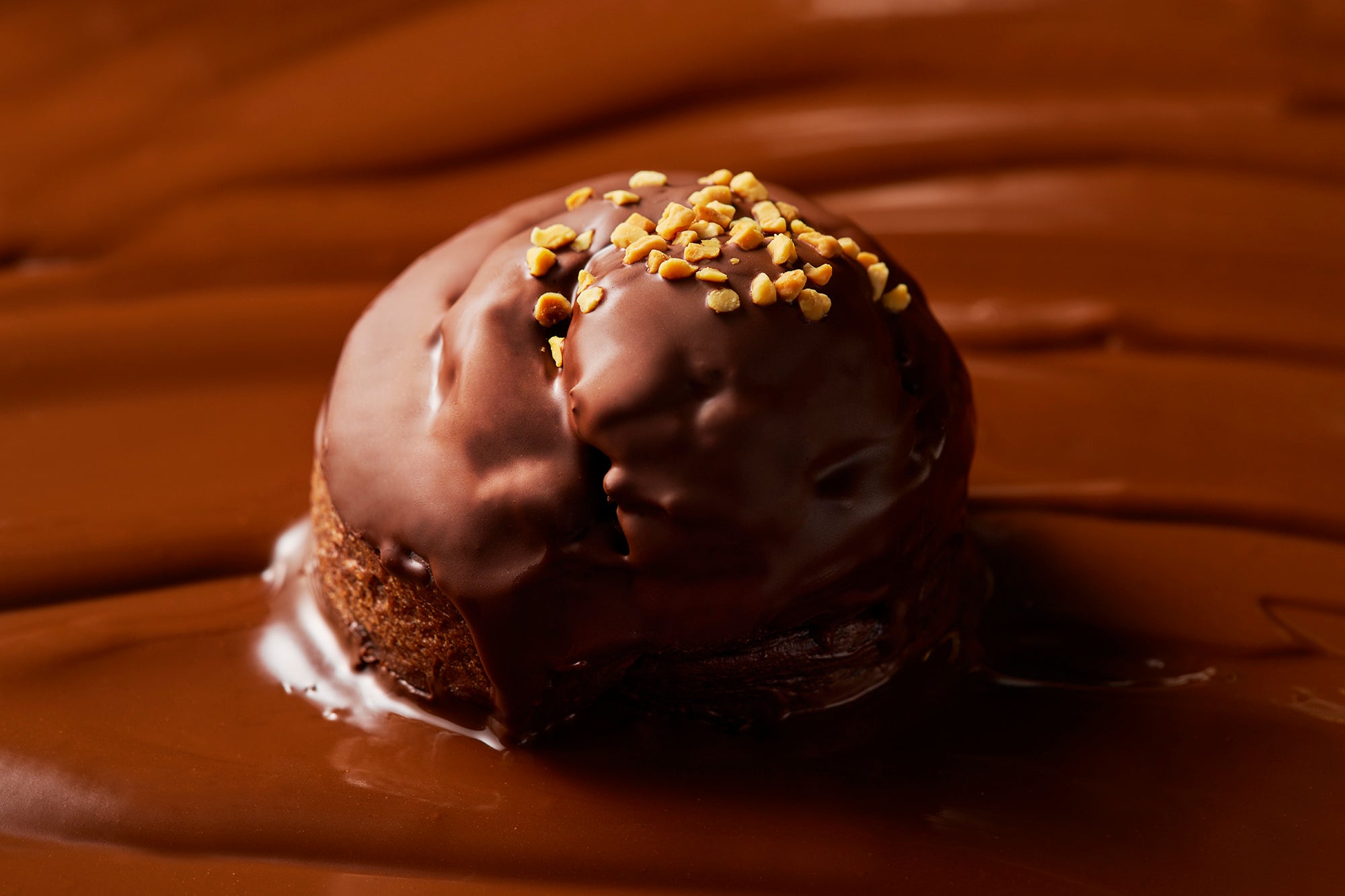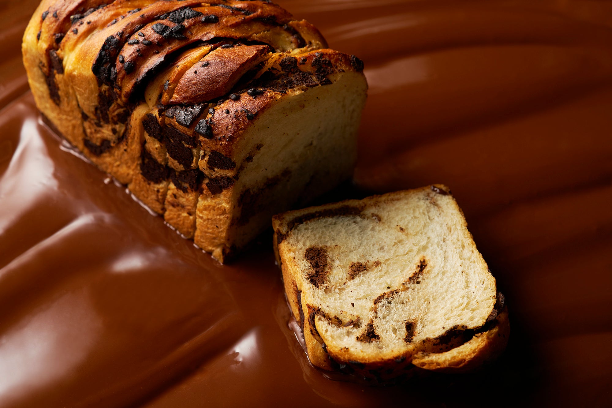 ふんだんにチョコレートを練り込んだ生地にガナッシュを巻き込み、チョコレートソースをたっぷりとかけた、チョコレート好きにはたまらない商品です。