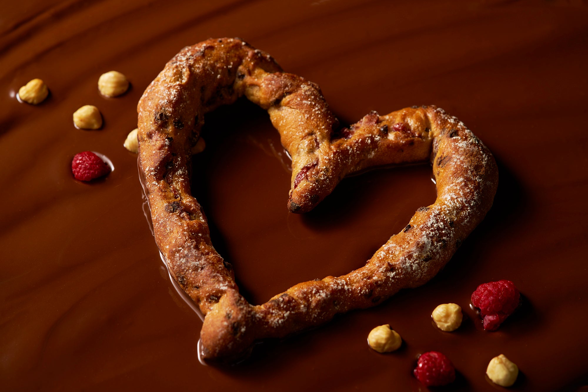 定番ベーカリー商品のショコラクランベリーをハート形に焼き上げました。カリッとした食感とチョコレートが練り込まれた濃厚な生地の味わいが特徴です。