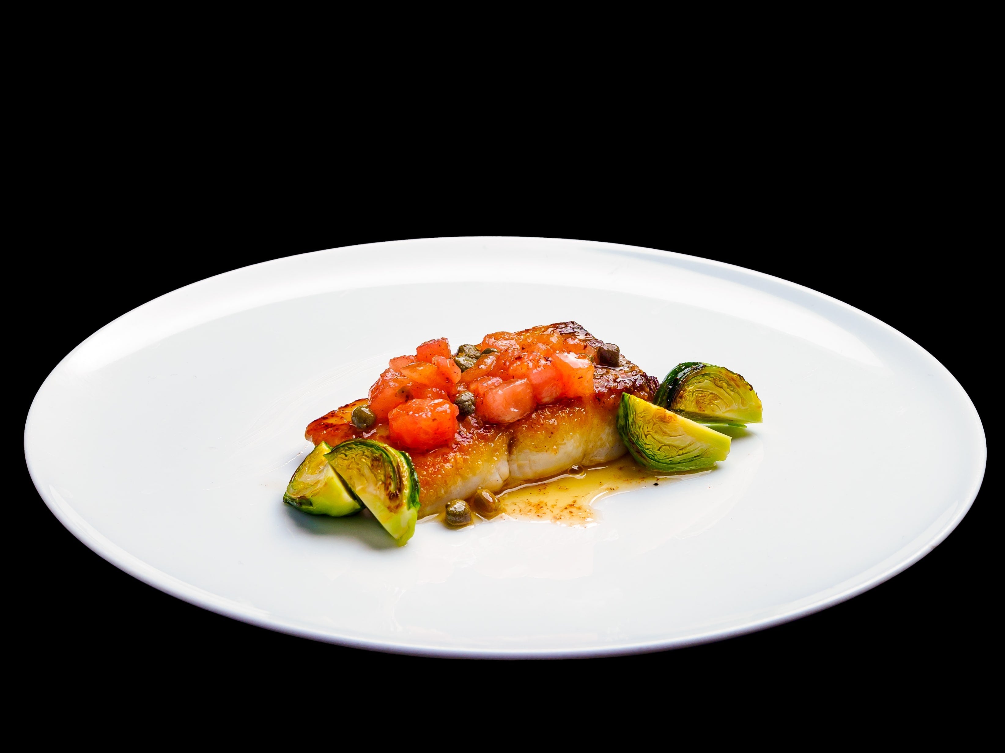 口の中に入れると身がふんわりとほどけ、焦がしバターのほんのりと甘い風味、ケーパーとトマトの爽やかな酸味が広がります。