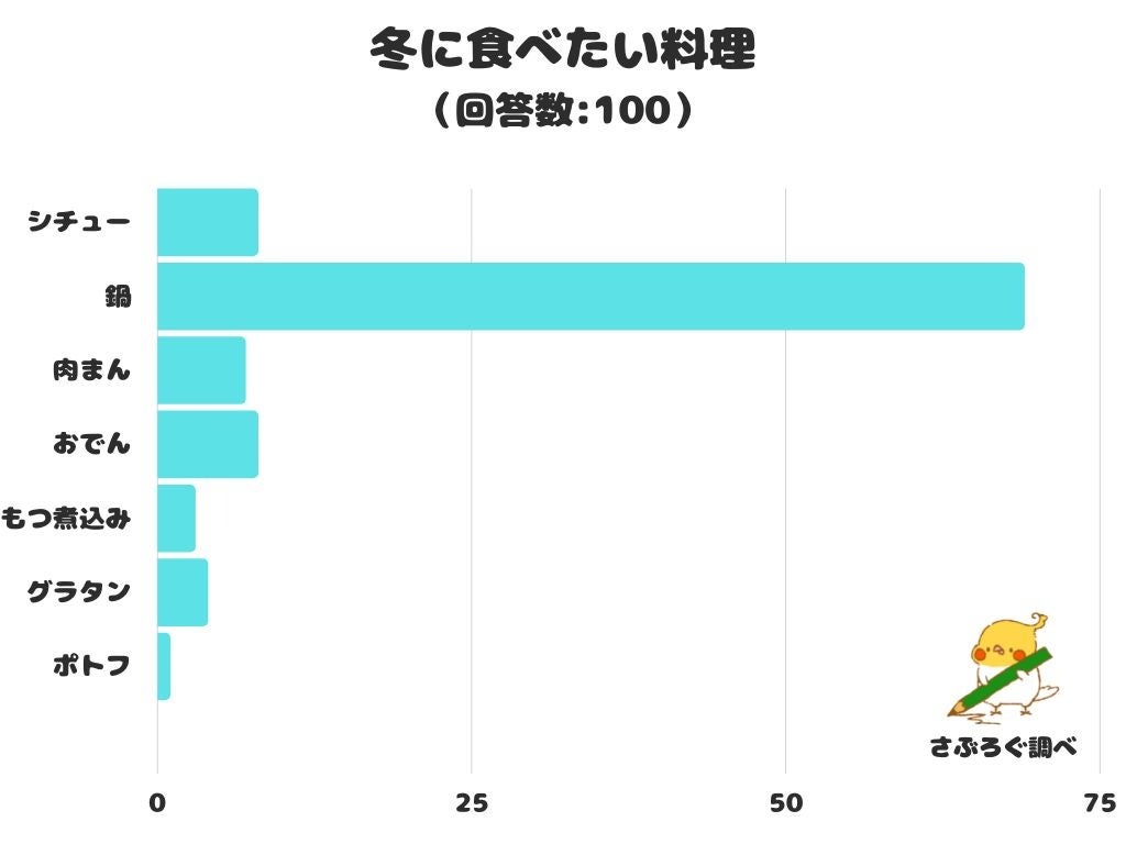 100人にアンケートを行ったところ、「鍋」と回答したのは全体の69.0%でした