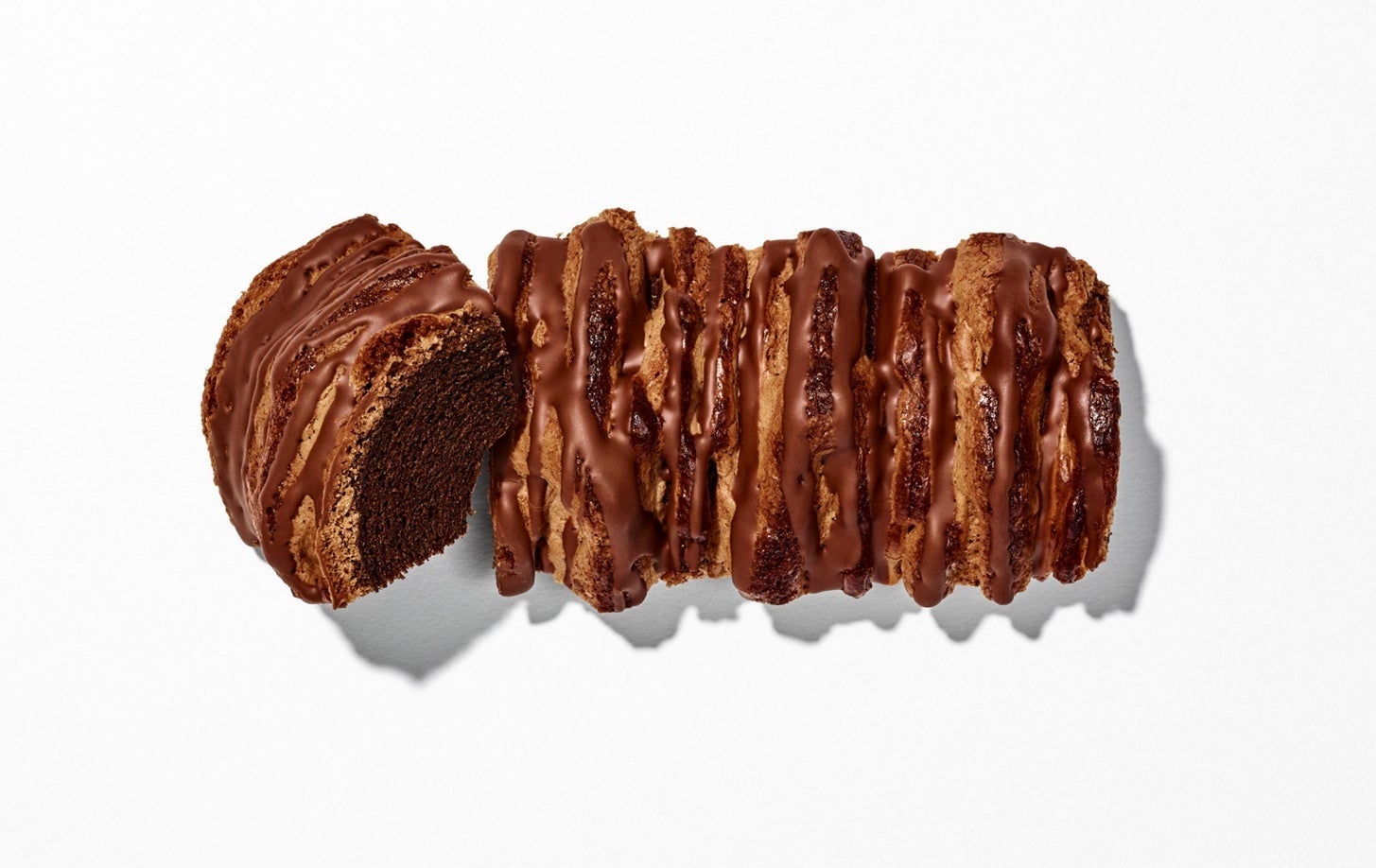チョコレートを贅沢に使い、しっとりとした口あたりにこだわり、じっくりと焼き上げた芳香なカカオが香るチョコレート感たっぷりの濃厚なバームクーヘン生地に、チョコレート味のマカロン生地にかけて二度焼きし、さらに、チョコレートをかけて木肌のように仕上げた新食感のバームクーヘン。トリプルチョコレートのチョコづくしでバレンタイン限定で初登場!