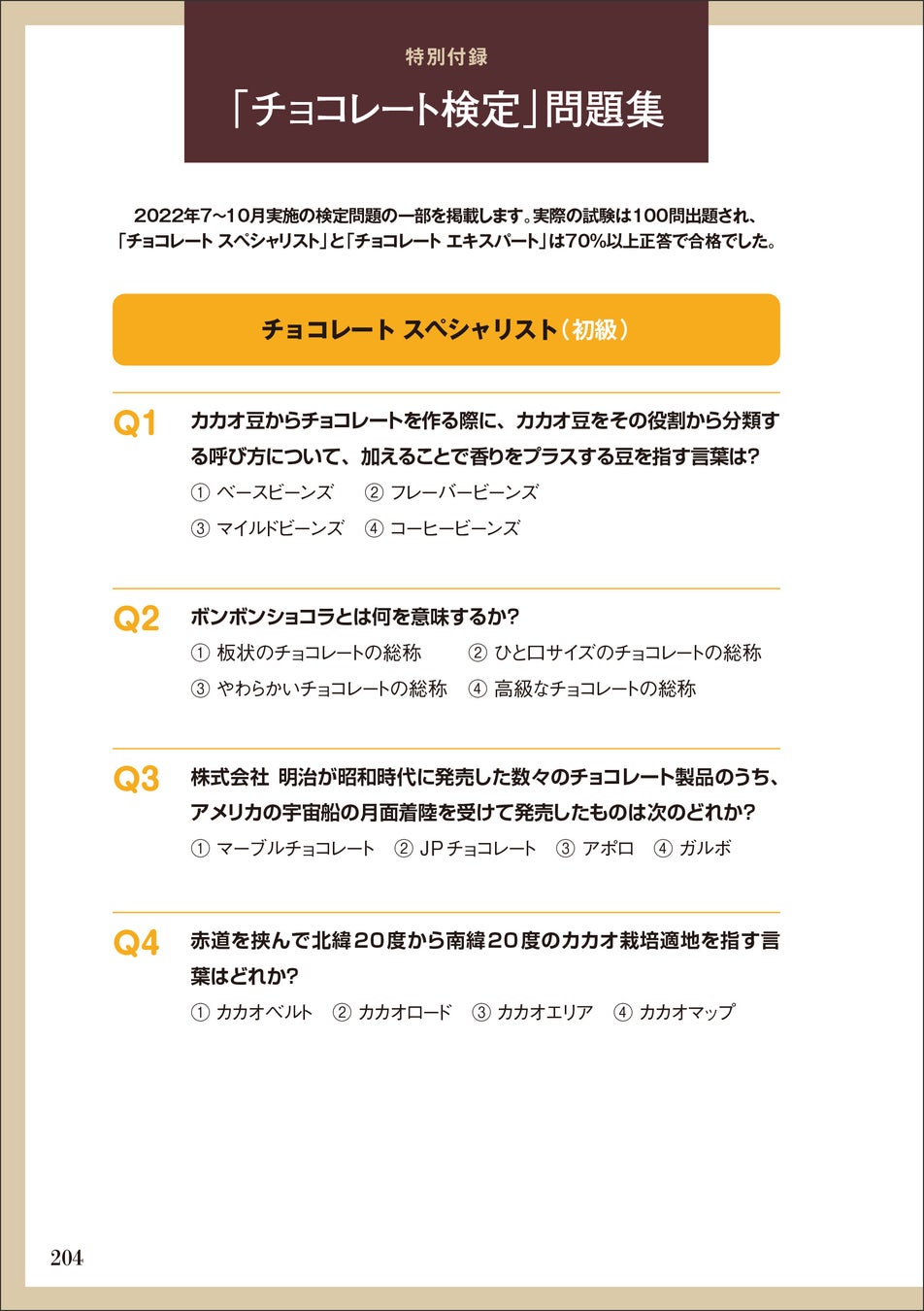 知識を深めることで、チョコレートのたのしみ方がより広がる「チョコレート検定」。CBT(Computer Based Testing)方式により、全国47都道府県を網羅した約200か所のテストセンターで受検が可能です。とくに、初級レベルの「チョコレートスペシャリスト」、中級レベルの「チョコレートエキスパート」の試験問題は、本書からの出題が中心となるので、受検者にとっては必携の1冊。巻末には、検定試験の傾向と対策がわかる問題集も付いています。