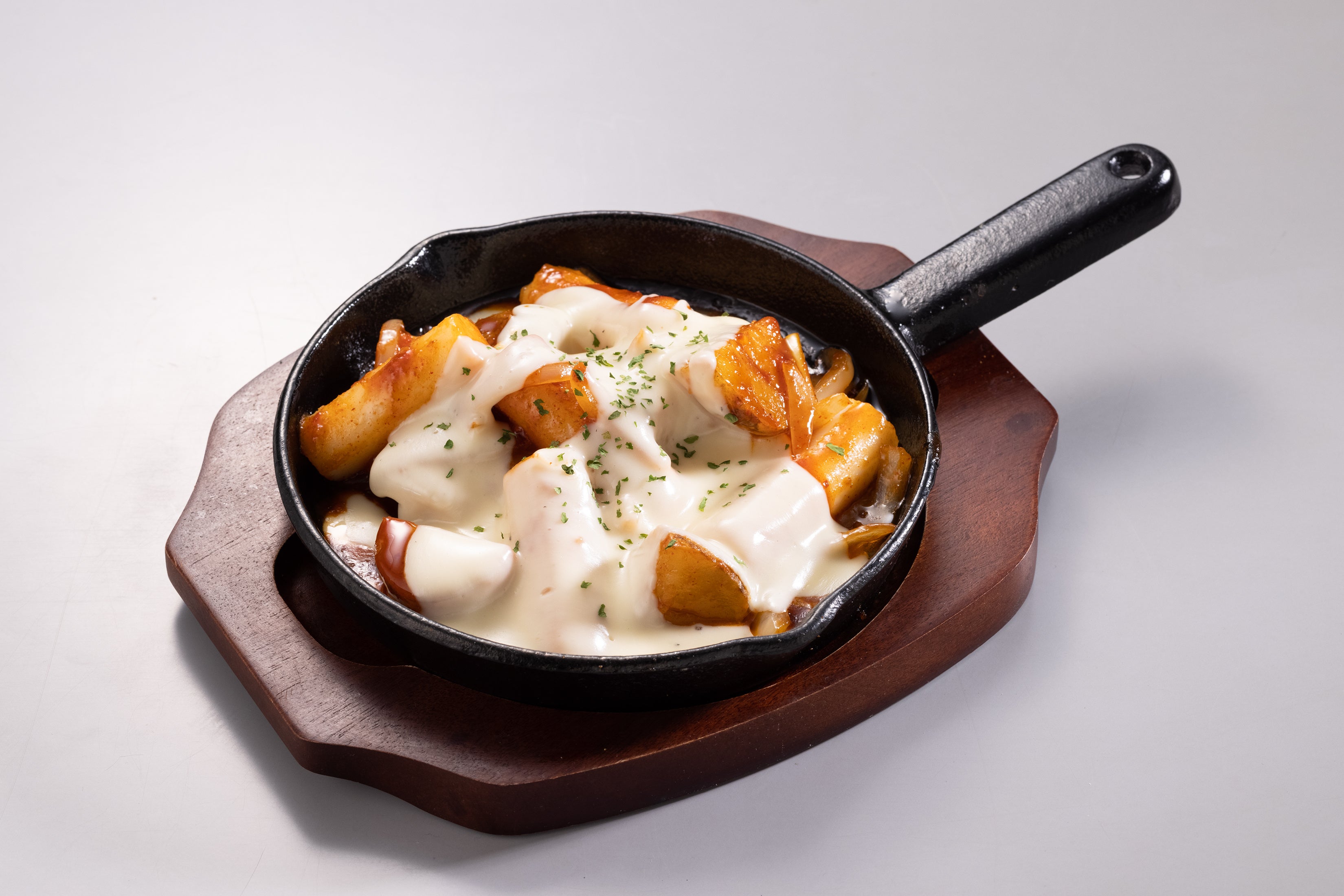 韓国のお餅「トッポギ」をヤンニョムソースで炒めた人気メニュー。