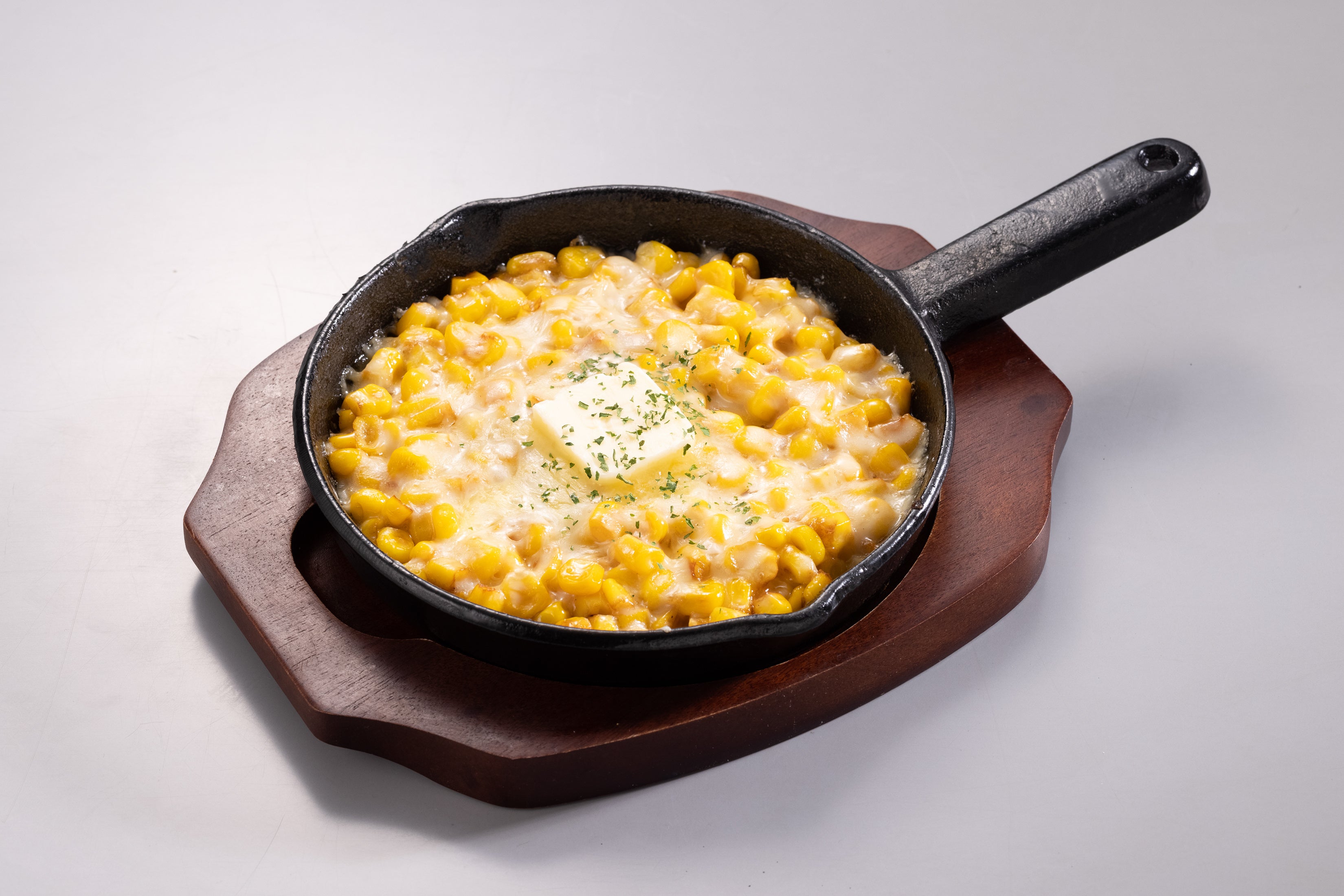炒めた香ばしいコーンにたっぷりチーズをかけた一品。