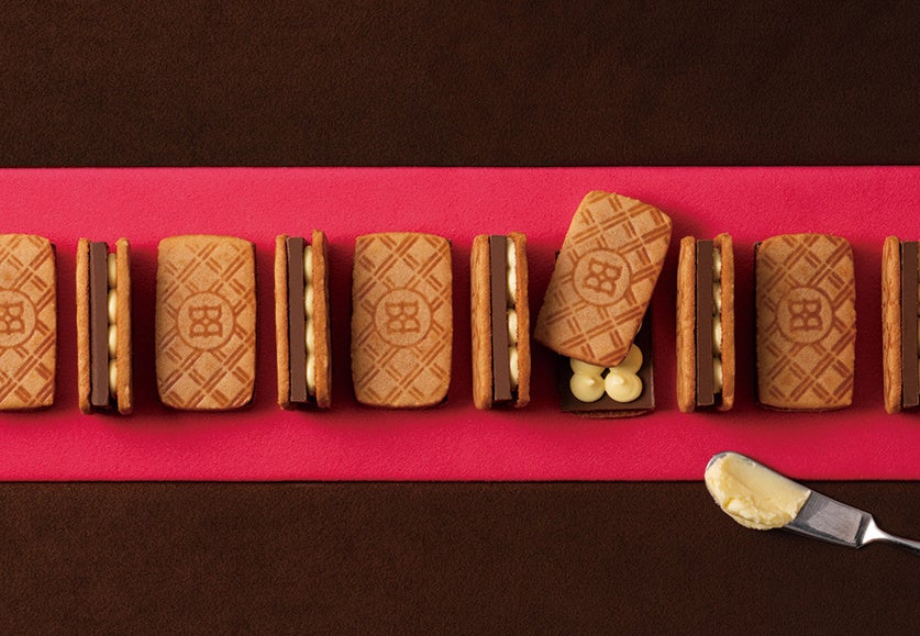 ふっくらしぼったバターホイップショコラに、アーモンドを練り込んだ厚切りプラリネショコラ。チョコレートの祭典にふさわしく、サクサクのバターサブレでボリュームいっぱいにサンドしました。バタースイーツ専門店だからこそ生まれた“バター×ショコラ”の発想で、口いっぱいのコクどけ体験をお届けします。
