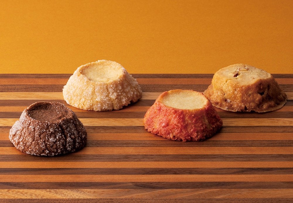 代表作「バターステイツ」は、北海道産バターの⾹りが⼝いっぱいにあふれる “最⾹峰のバタークッキー”。北海道産バターを極限まで練りこんだバターリッチなスペシャル⽣地で、⾷べる前から⾹りあふれる“最⾼峰にして最⾹峰”のおいしさを作りあげました。本品の特徴である⼭の姿は、バターのとろけた証。⽣地のバターがなだれとろけた瞬間で焼きとめる特別製法「なだれとろけるマウンテン焼き」で、サクサクのバターマウンテンに仕上げています。芳醇なバター⾹るベーシック、ショコラ、アーモンド、ベリーシュガーの豊富な4味。