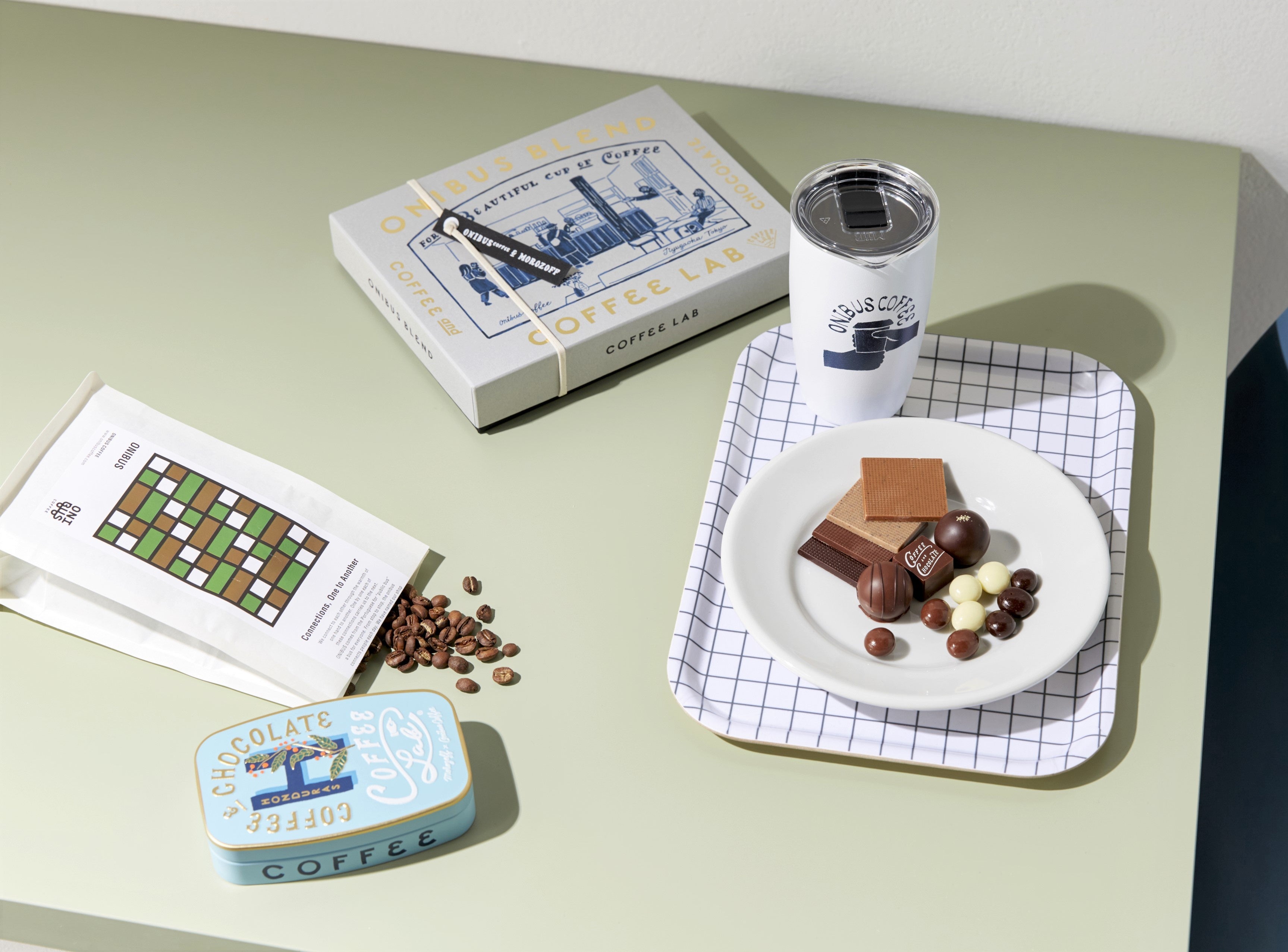 コーヒー豆を産地から厳選しこだわり抜いた一杯を提供する「オニバスコーヒー」と「モロゾフ」がコラボ。理想のコーヒー豆との出逢いが生み出すチョコレートの新しい魅力をご提案。手描きアーティストchalkboyとのコラボによるタンブラーも。「コーヒーラボ(モロゾフ×オニバスコーヒー)」オニバスブレンド(21個入り、オニバスビーンズ60g、日本製)2,268円/ONIBUS BLEND(100g)788円/MiiR ONIBUS ORIGINAL TUMBLER 8oz(1個)2,970円