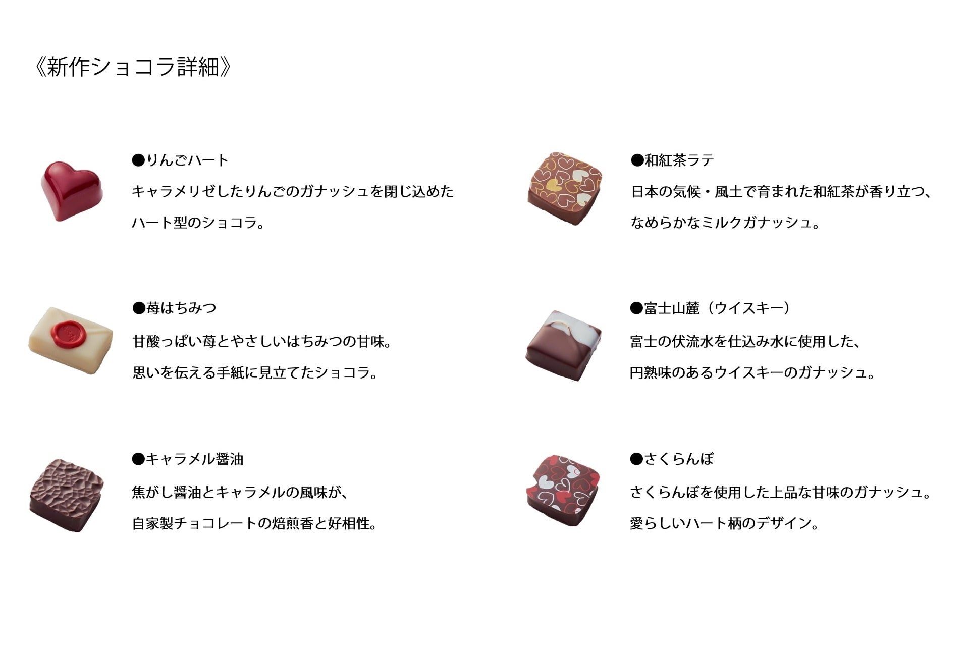 ロゴデザインの洗練されたシックな黒のボックスに、りんごのキャラメルガナッシュのハート型チョコレートを詰めたバレンタイン限定品。当店のスペシャリテであるパレドオールと一緒に、和紅茶や醤油などの「日本の素材」をテーマにした新作ショコラを詰め合わせました。ビターチョコレートのみならずホワイトチョコレートにいたるまでカカオ豆から手掛けて自社で製造するショコラティエならではのバラエティ豊かな「コフレ レザムール」は、東京・大阪・山梨の各店と公式オンラインショップでの限定販売品。大切な方への贈り物や、自分へのご褒美ショコラにおすすめの一品です。