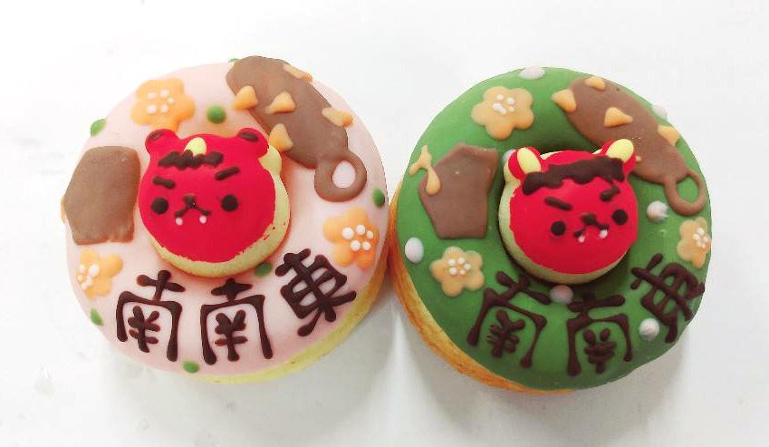 今年の方角は南南東!一口で鬼退治だ!!いつものクマゴロンが鬼に扮し、丸かじりで福を呼ぶかわいらしいドーナッツです。