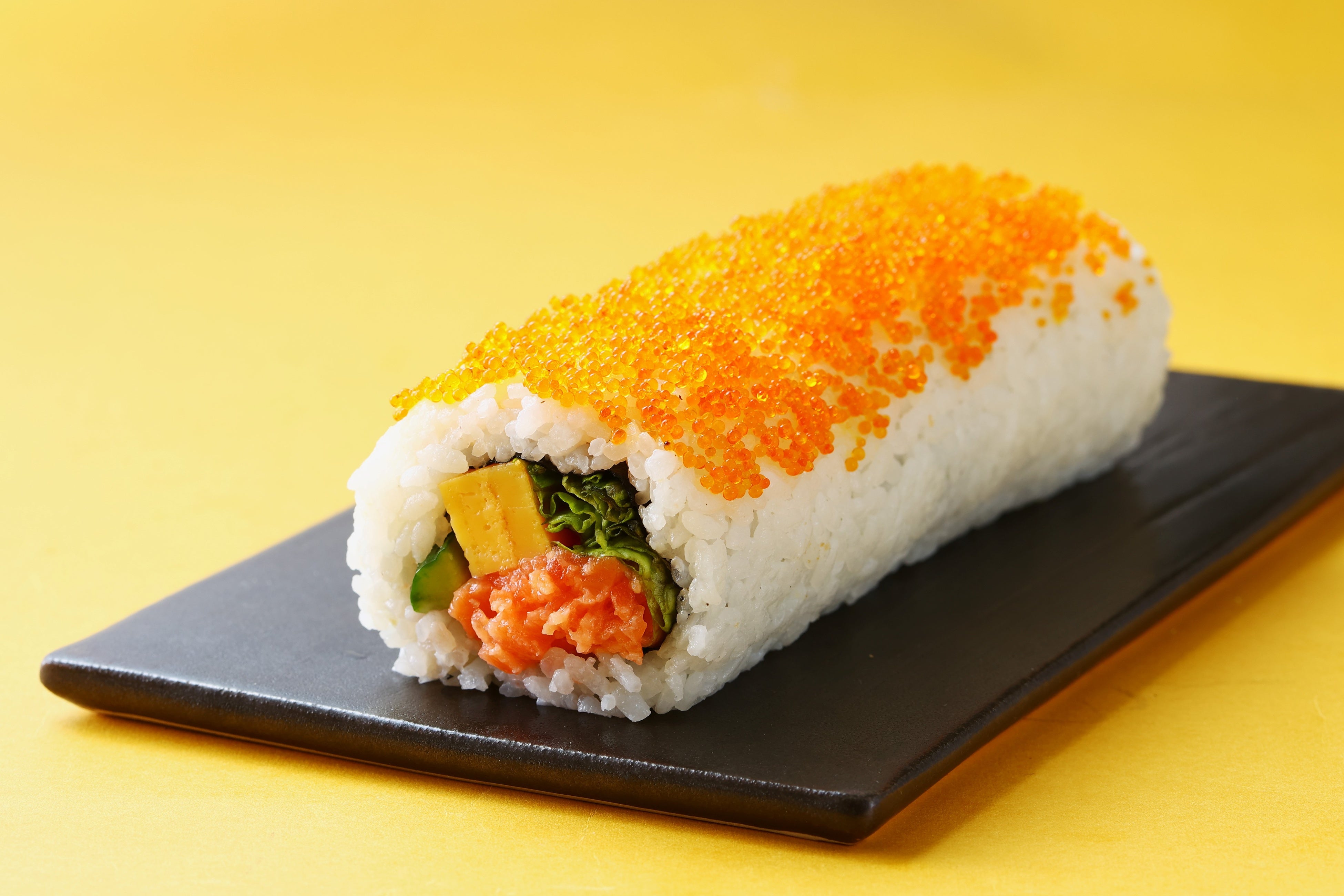 3種のサーモン(銀鮭、サーモントラウト、アトランティックサーモン)が入った恵方巻。