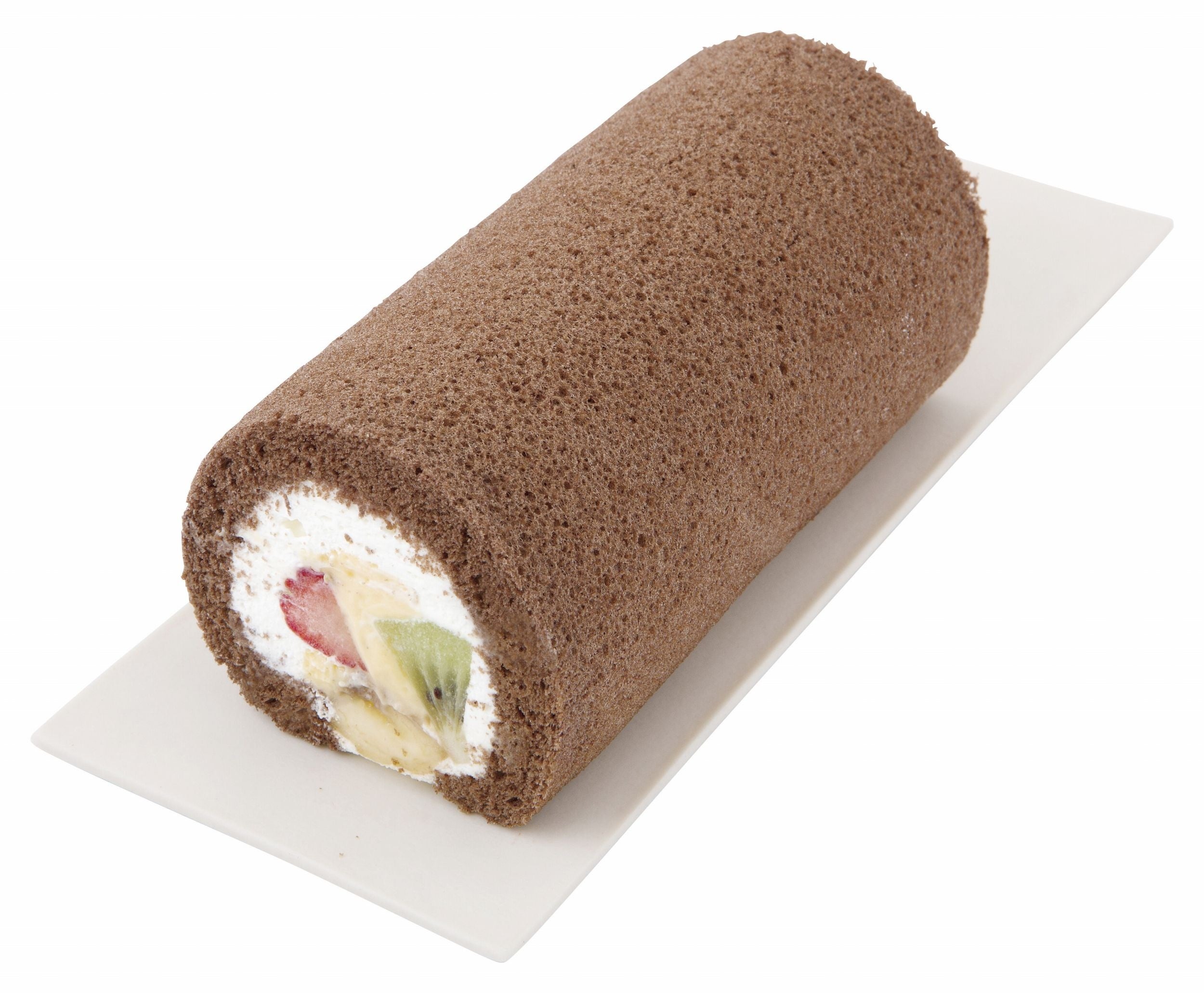 3種類のフルーツ(苺・キウイフルーツ・バナナ)と生クリームとカスタードクリームをチョコレートスポンジで巻き上げました。