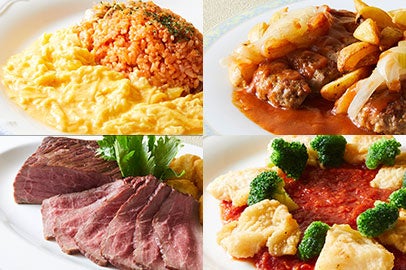 メニュー例:シーズナルサラダ、本日のスープ、黒毛和牛サーロイン、焼き野菜、ライスセット、デザート、食後のお飲み物